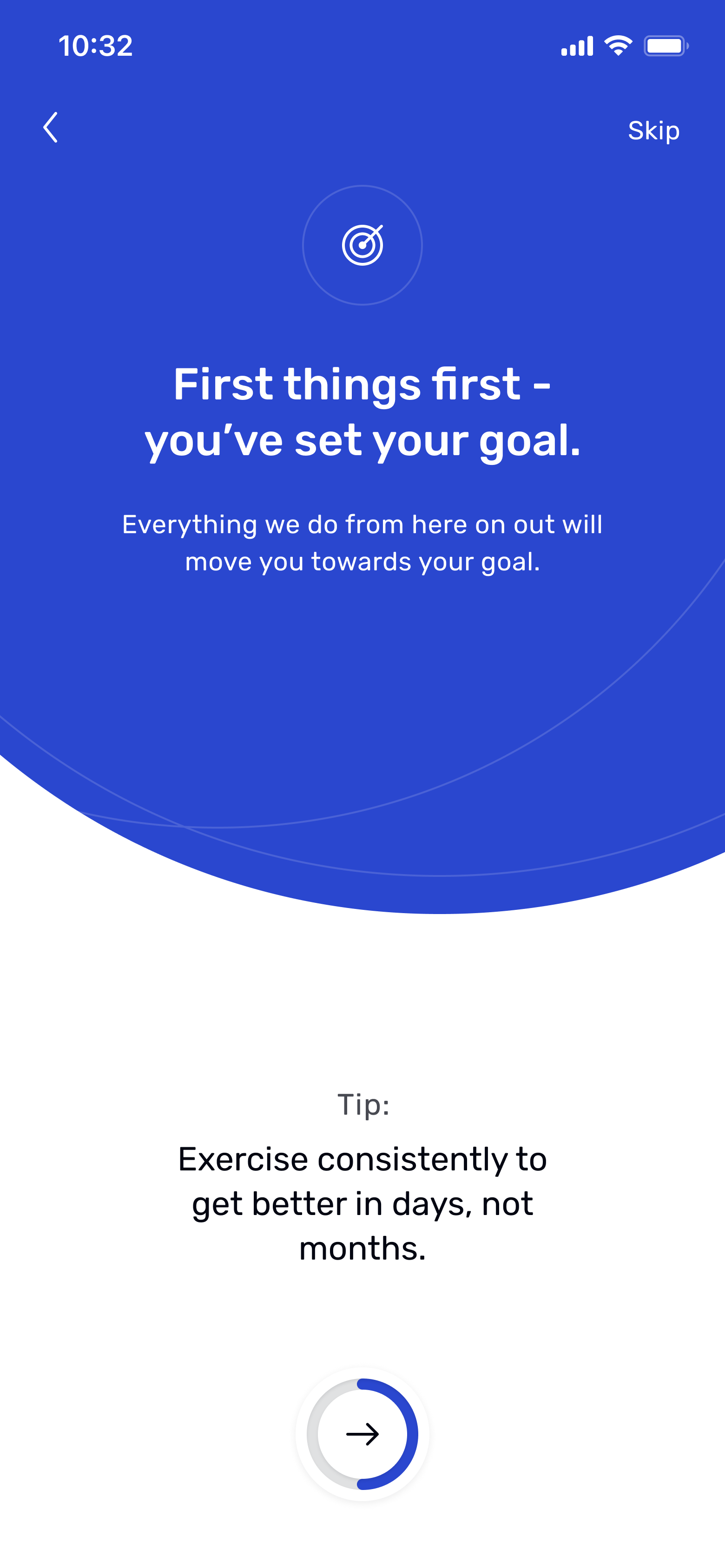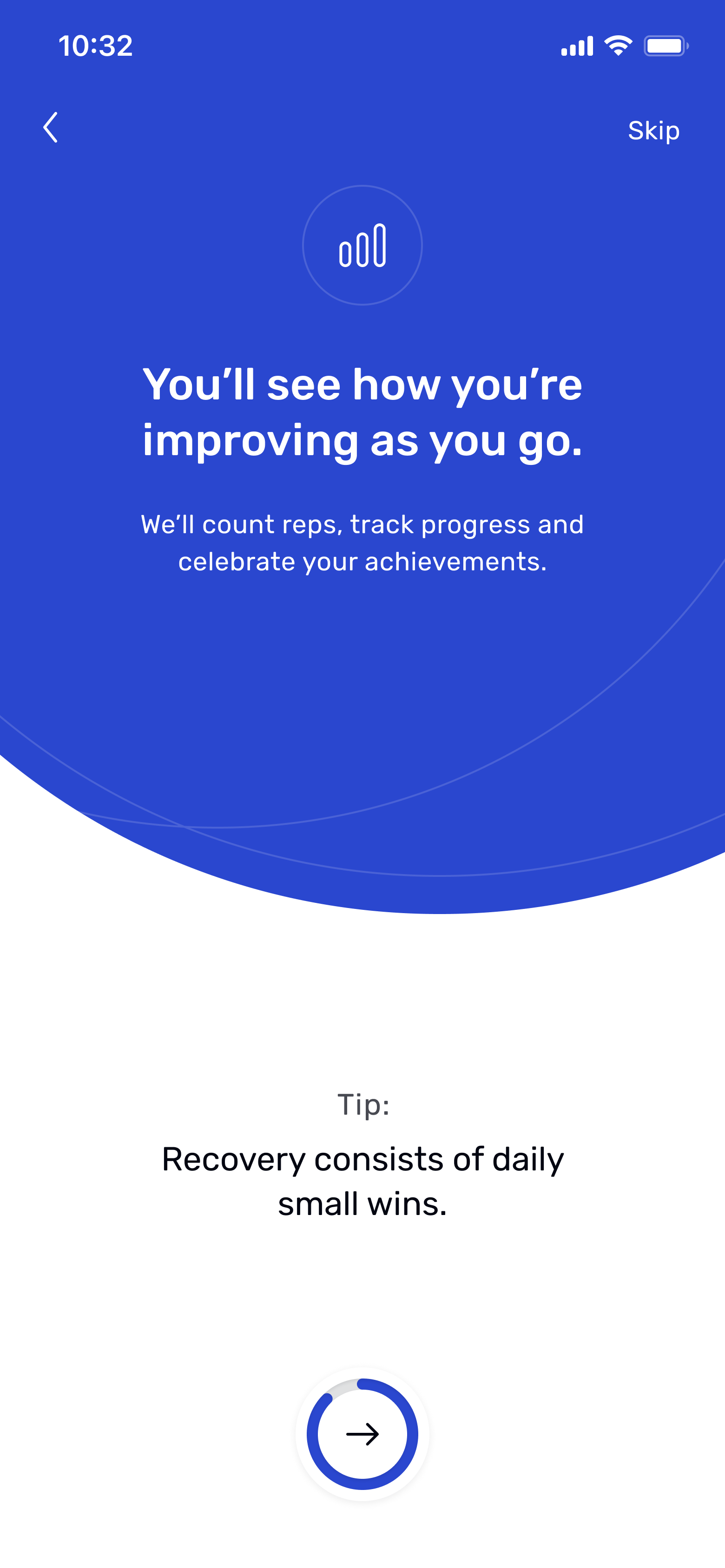 As one user put it, “It’s good to think about your goal while you’re in the most pain. So that as you’re getting better, you can be reminded of your goal. I like that they’re telling me why I set a goal and that the work I’m doing is all to reach my goal.”